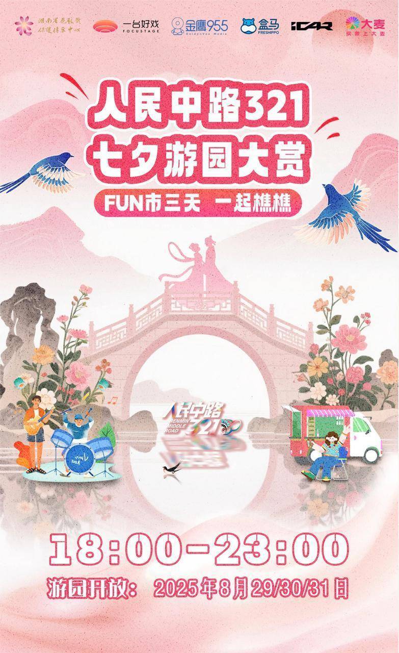 8月29 日至31日,湖南省花鼓戏剧院将举办“人民中路321 七夕游园大赏”活动。灯光流转,长街如梦,汉服同袍擦肩而过,NPC含笑作揖,沉浸式感受七夕氛围,还有陶艺、湘绣、制香、面塑、糖画五大非遗秘境,带你体验优秀传统文化。此外,沉浸式幻境秀《新刘海砍樵》——《约定》七夕特别返场将于8月29日上演,在熟悉的旋律里,见证不朽爱情。