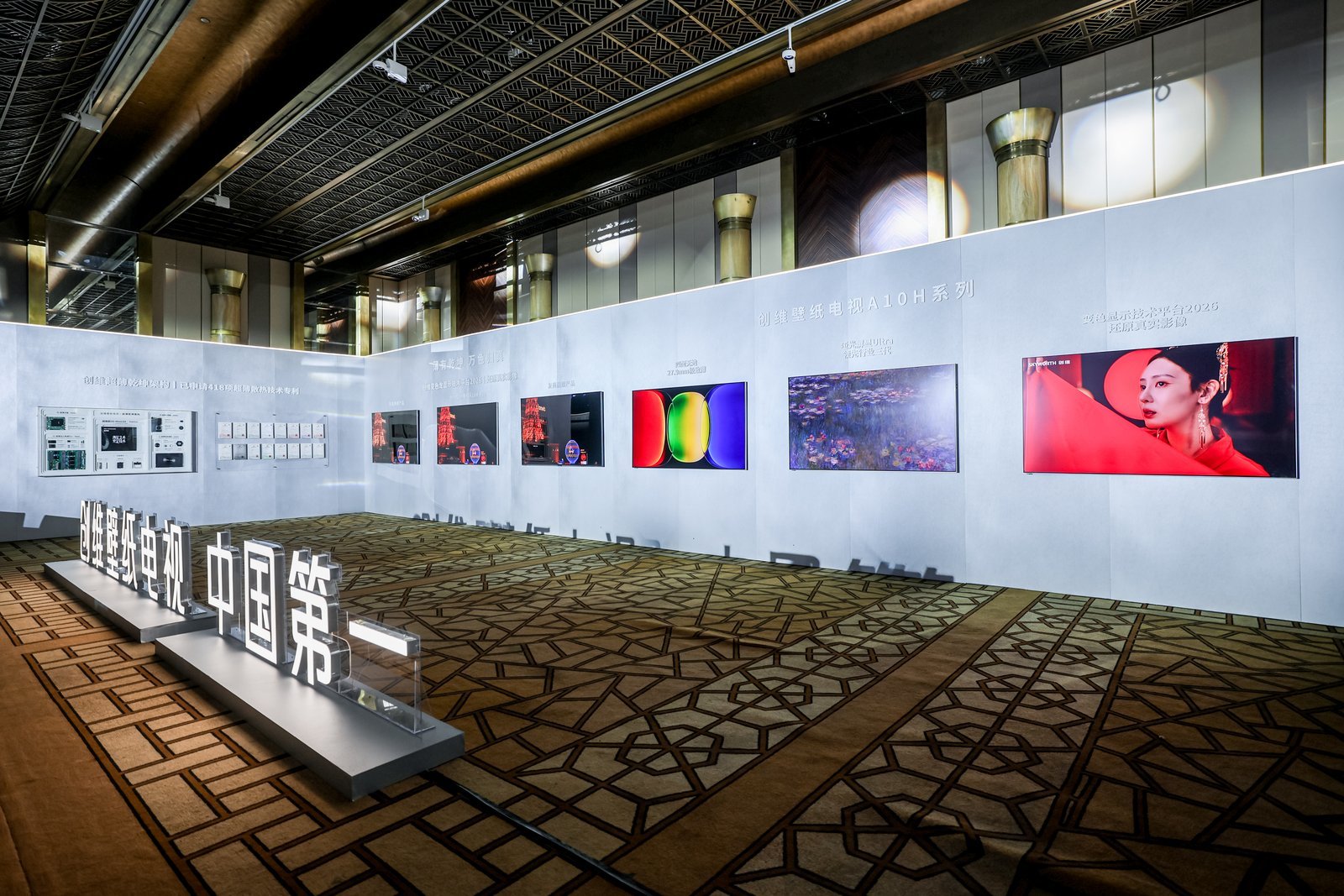 走进AWE2026创维展台,最直观的感受是“不像卖电视的”。科技美学形象区里,创维A10H Pro电视像一幅画一样“贴”在墙上,正面几乎看不到边框;旁边的技术展示区,一块剖开的屏幕模组向观众展示着内部乾坤:自研超薄乾坤架构、0.3mm超薄石墨烯均热板、变色龙AI画质芯片S8,这些精密部件被压缩进2.7cm的机身里。