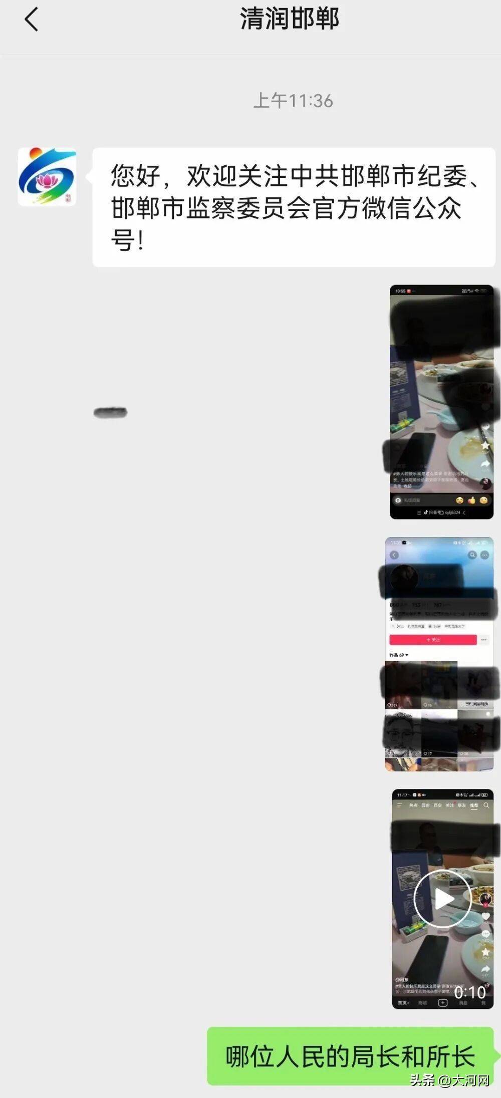 网友反映至邯郸纪委。网络截图。