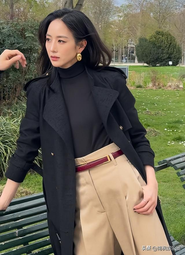 她这次与王一博共同参加香奈儿的大秀,简单的黑色风衣配浅咖西裤,干净利落,职场女强人的气场油然而生。