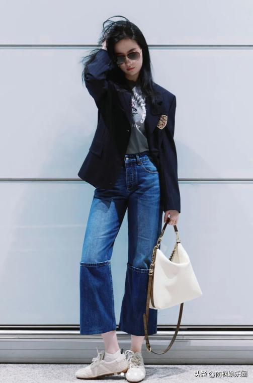 比如机场的这套校园风小外套配牛仔裤穿搭,就这么简单,轻轻松松就秒了。