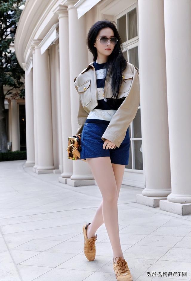 短款外套配蓝色短裤,一双平底鞋,就这样。