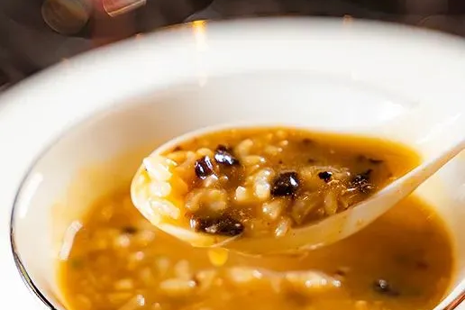 很多酒楼的最后一道菜就是老菜脯煮粥,加一点海鲜一起煮。老菜脯还能炒、焖、煮、蒸,搭配海鲜,比如鱿鱼,或者搭配肉类都可以。因为它本身偏咸,烹饪时要注意咸淡搭配。